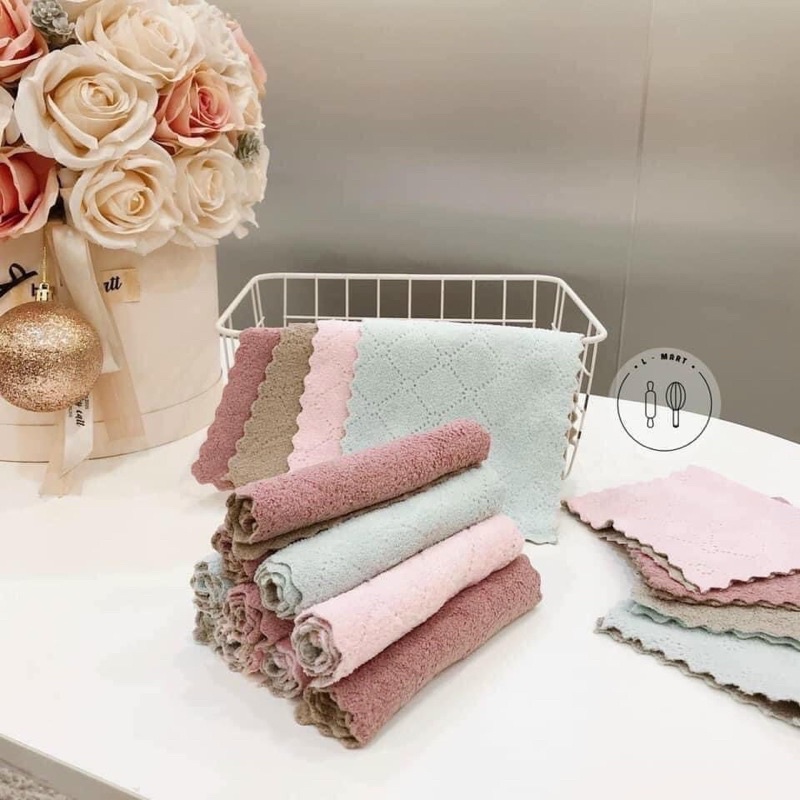 👩🏻🦰Khăn được feedback tốt, mềm mịn, thấm nước siêu tốt và vắt kiệt siêu nhanh khô, nhà ai cũng cần 1-2 set để lau bát đũa, lau tay, lau bàn, lau bếp...