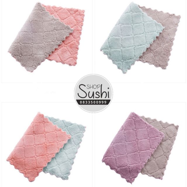 - Khăn lau đa năng 2 mặt thấm hút nước tốt so với các loại khăn khác do 2 mặt khăn thiết kế các sợi bông nhung dày dặn.