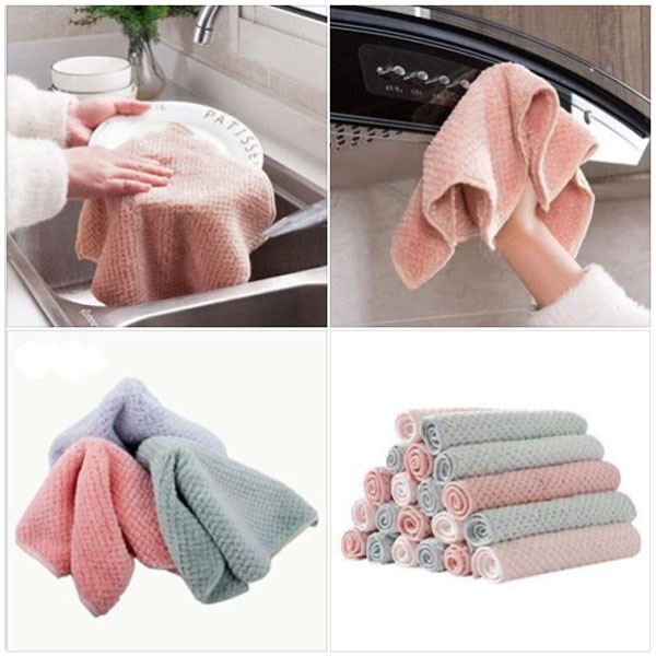 Khăn lau đa năng : lau bàn, lau bếp ,lau tay,lau chén bát.... được làm từ sợi Micro Fiber thân thiện với môi trường.- Sợi vải bông mềm mịn,bền đẹp với thời gian.