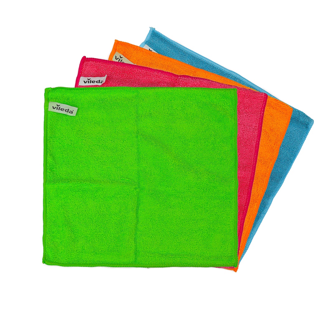 - Set khăn lau đa năng 4 cái Vileda sắc màu dễ dàng lau chùi trên mọi bề mặt.
