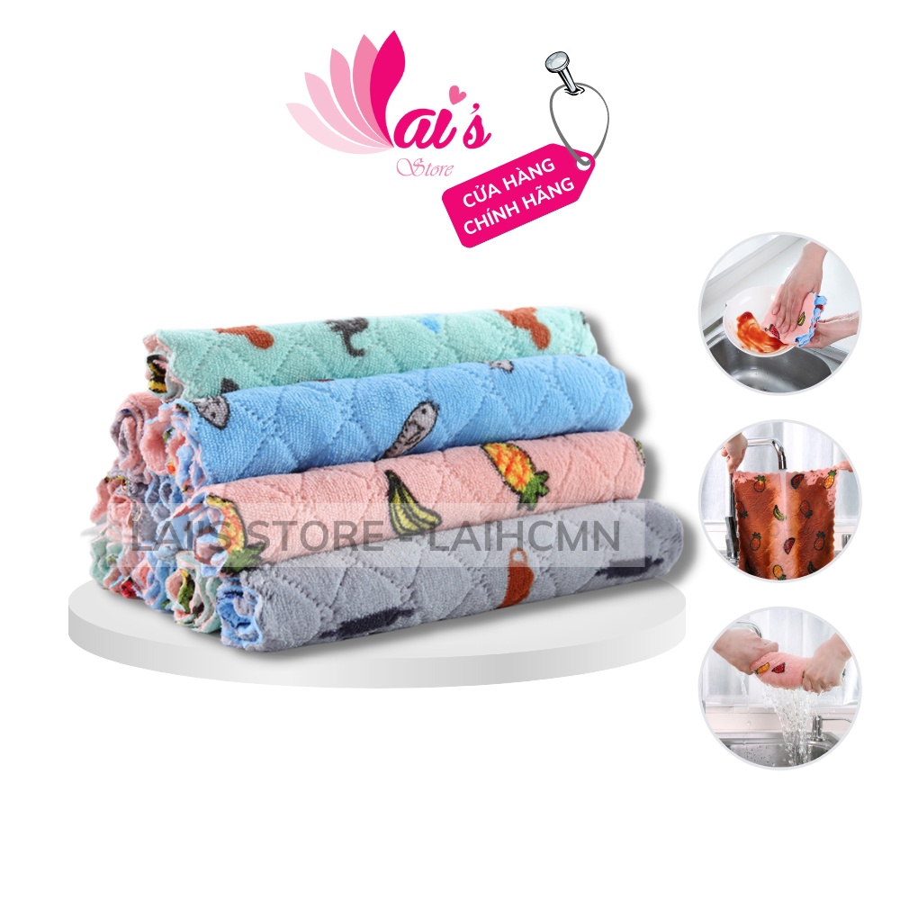 Nhà cửa & Đời sống > Dụng cụ nhà bếp > Khác || Khăn Lau Đa Năng Vuông 25 x 25cm (1 Cái) Họa Tiết Xinh Xắn, Lông Mềm, Không Ra Lông, Cực Kì Nhanh Khô - LAI'S STORECòn hàng