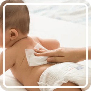 -Dùng khăn đã tẩm sẵn dịch lau sạch cho trẻ ở những vị trí trẻ đang bị ngứa, rôm sảy, mụn nhọt, hăm tã, viêm da, trước khi bôi các loại kem bôi ngoài da cho bé.