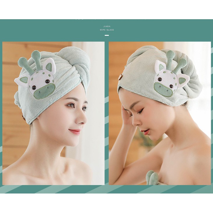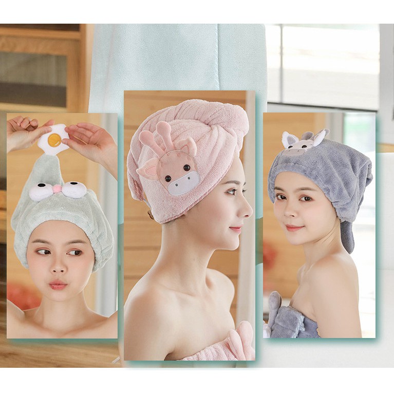 Khăn lau khô tóc / Khăn quấn đầu siêu thấm hình gấu dễ thương