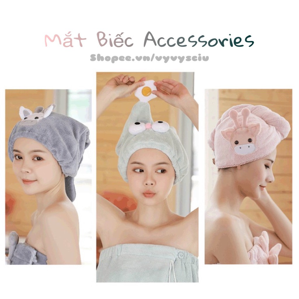 Cám ơn bạn đã ủng hộ Mắt Biếc Accessories!🍀Khăn lau khô tóc / Khăn quấn đầu siêu thấm hình gấu dễ thương