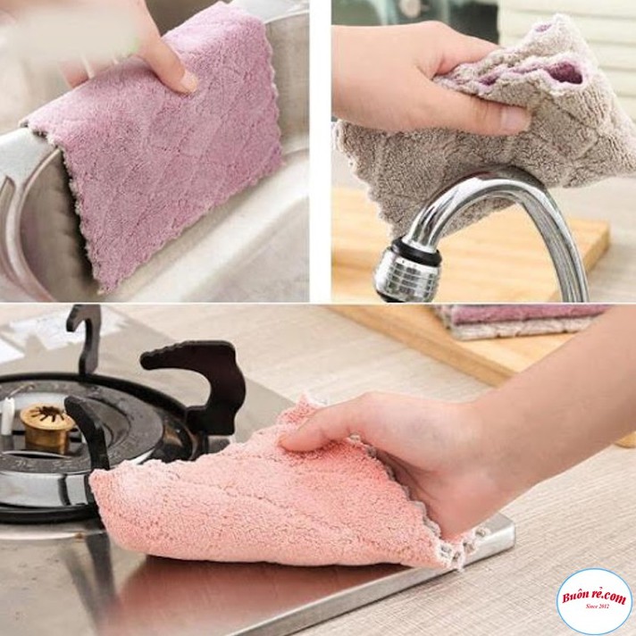 - Khăn Lau Bếp Đa Năng 2 Mặt làm sạch vết bẩn, hiệu quả trong việc lau sạch và làm khô chén dĩa, ly tách,..