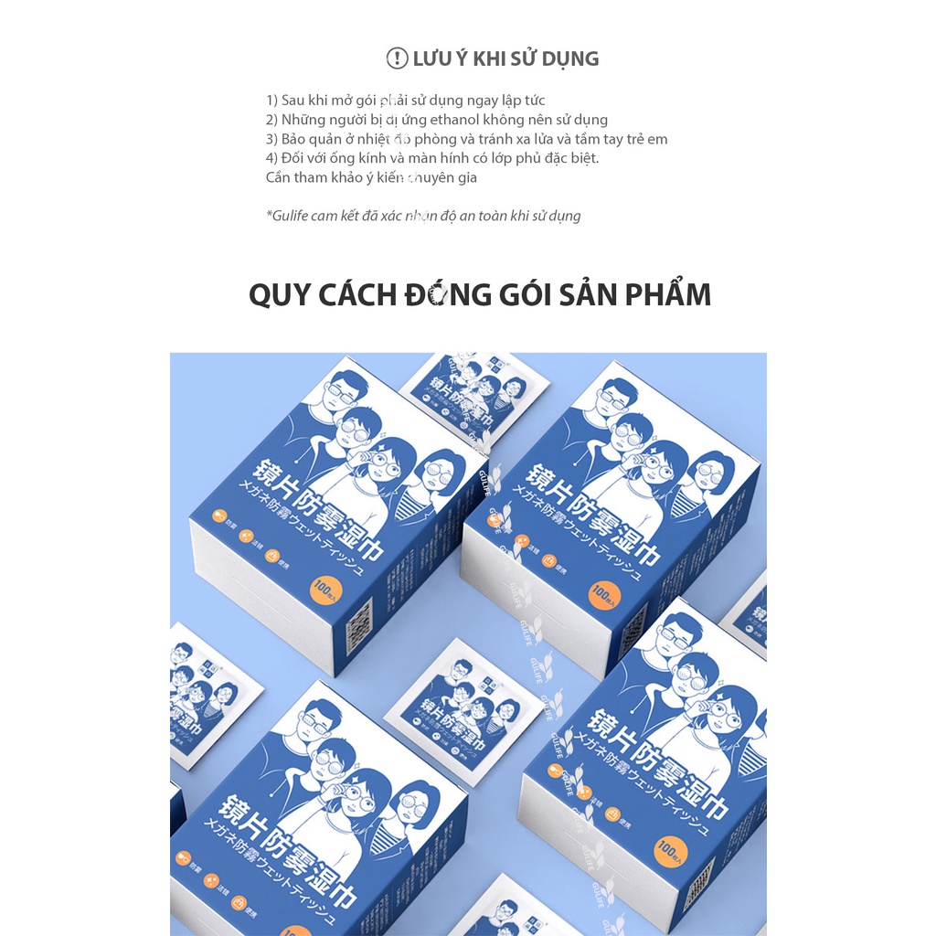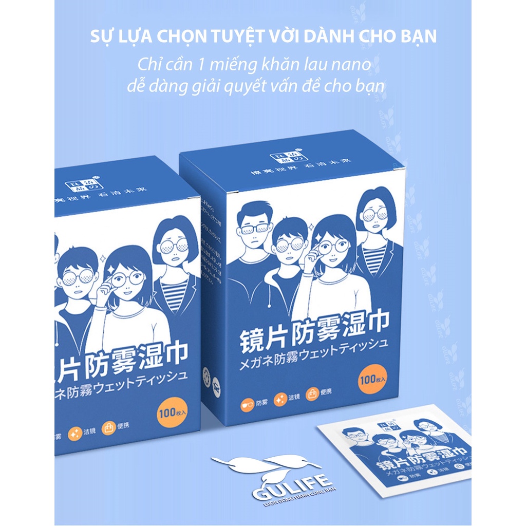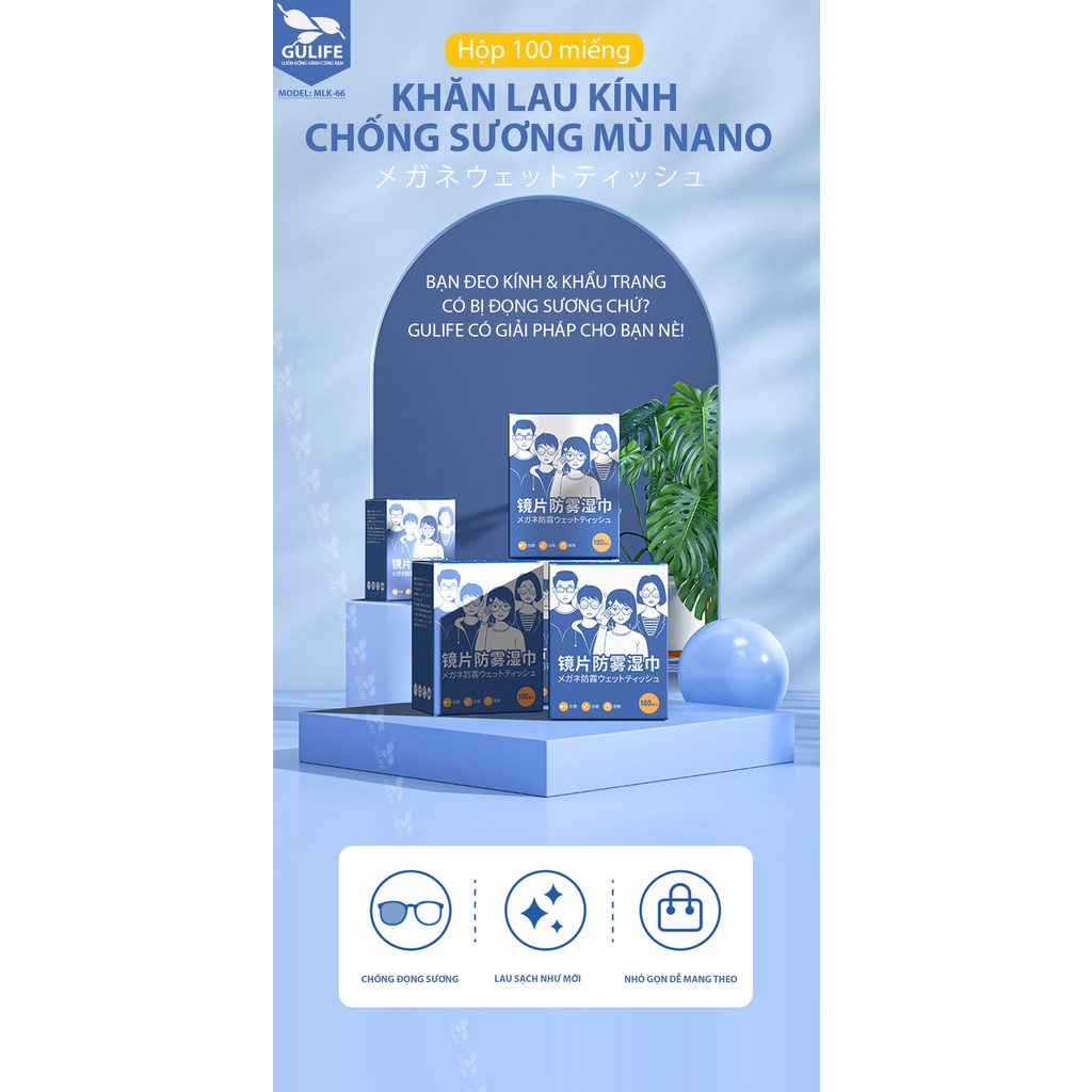 Khăn Lau Kính Nano Chống Bám Hơi Nước Gulife MKL-66 Công Nghệ Nhật Bản Hộp 100 Miếng - Kèm Quà Tặng Hấp Dẫn