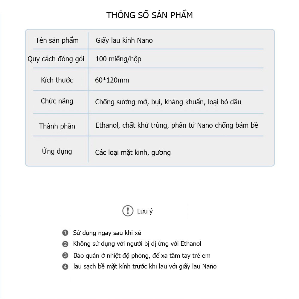 - Mỗi miếng giấy có tẩm dung dịch cồn lau sạch mắt kính sáng bóng, trong veo, bảo vệ tầm nhìn của mắt .