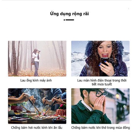 - Chuyên trị sương mù đọng trên kính, hơi nước trong môi trường máy lạnh, bám hơi nước trong hơi thở khi đeo khẩu trang