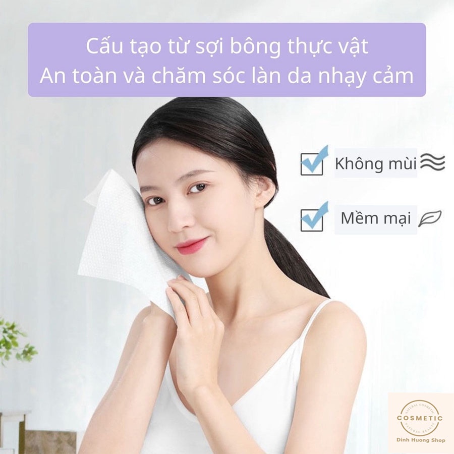 Giấy lau mặt thiết kế dùng một lần, đây là loại khăn lau lý tưởng cho làn da mỏng manh hoặc nhạy cảm, và sản phẩm cũng thuận tiện sử dụng.