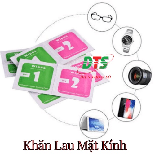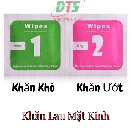 Khăn lau 2 chức năng-khăn số 1 ướt có dung dịch tẩy nhẹ dùng lau vệ sinh cho bề mặt kính hoặc xung quanh ngoài vỏ điện thoại
