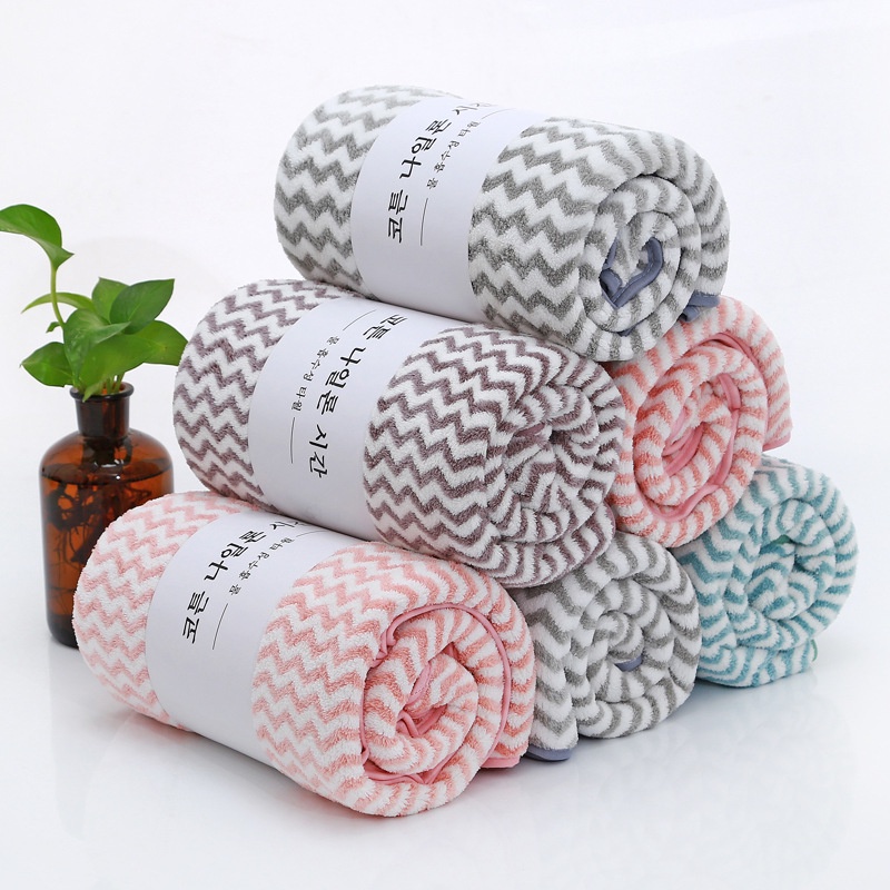 1 Chiếc Khăn Mặt Lông Cừu Hàn Quốc 50x35cm Siêu Thấm Hút Loại Có Dòng Kẻ - Bán Lẻ 1 Cái - Khăn Xuất Hàn