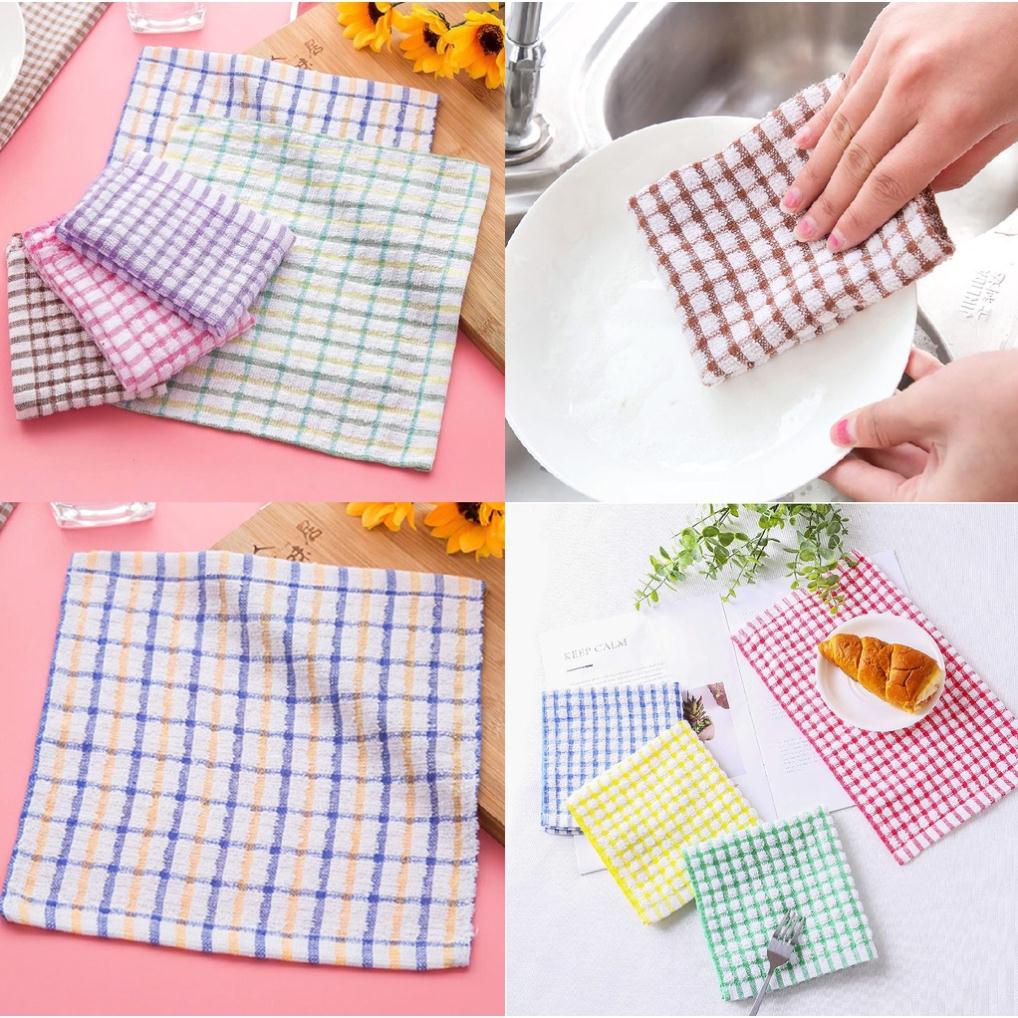 Khăn lau nhà bếp đa năng họa tiết caro màu- Với chất liệu sợi mịn siêu thấm nước, lau khô những vết ẩm ướt trong 1 lần lau.