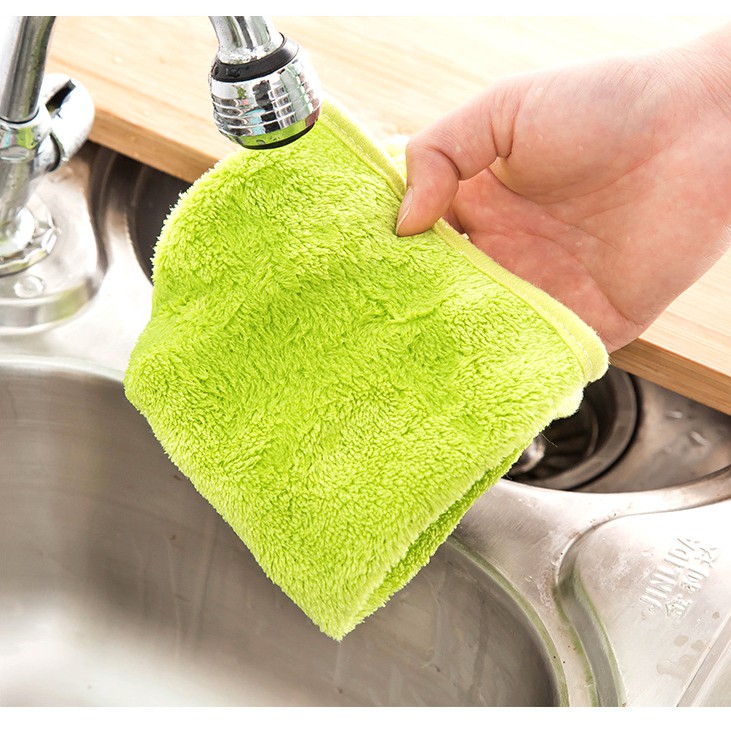 Khăn lau được may bằng vải nhung san hô mịn thấm hút nhanh, không đổ lông, ra màu, không bám dầu mỡ, mau khô.Khách ghi chú chọn màu khi đặt hàng (nếu k ghi chú shop giao màu ngẫu nhiên)