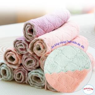 » Khăn Lau Bếp Đa Năng 2 Mặt thấm hút nước tốt so với các loại khăn khác do 2 mặt khăn thiết kế các sợi bông nhung dày dặn.