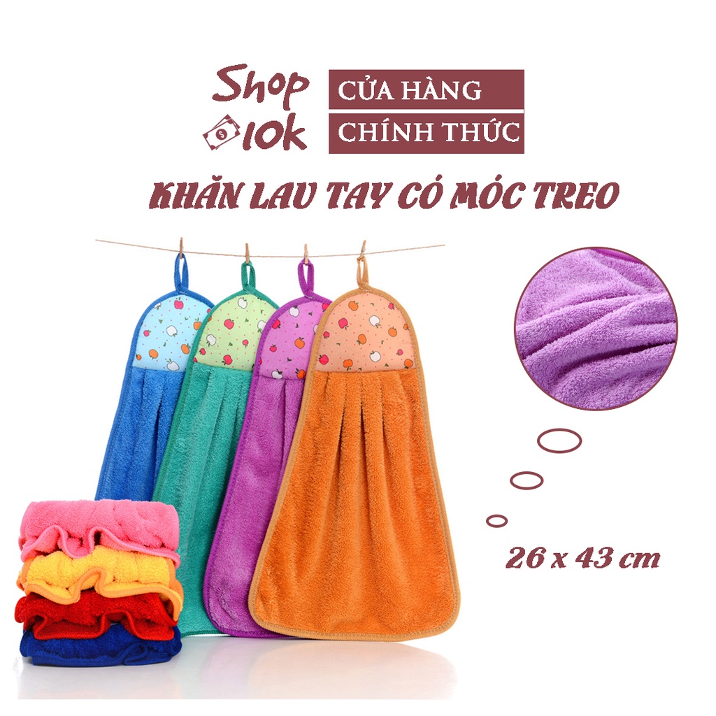 Nhà cửa & Đời sống > Đồ dùng phòng tắm > Khăn mặt, khăn tắm, áo choàng tắm > Khăn mặt || Khăn lau tay, Khăn lau bếp có móc treo màu sắc xinh xắn dễ thương loại 26 x 43cmCòn hàng