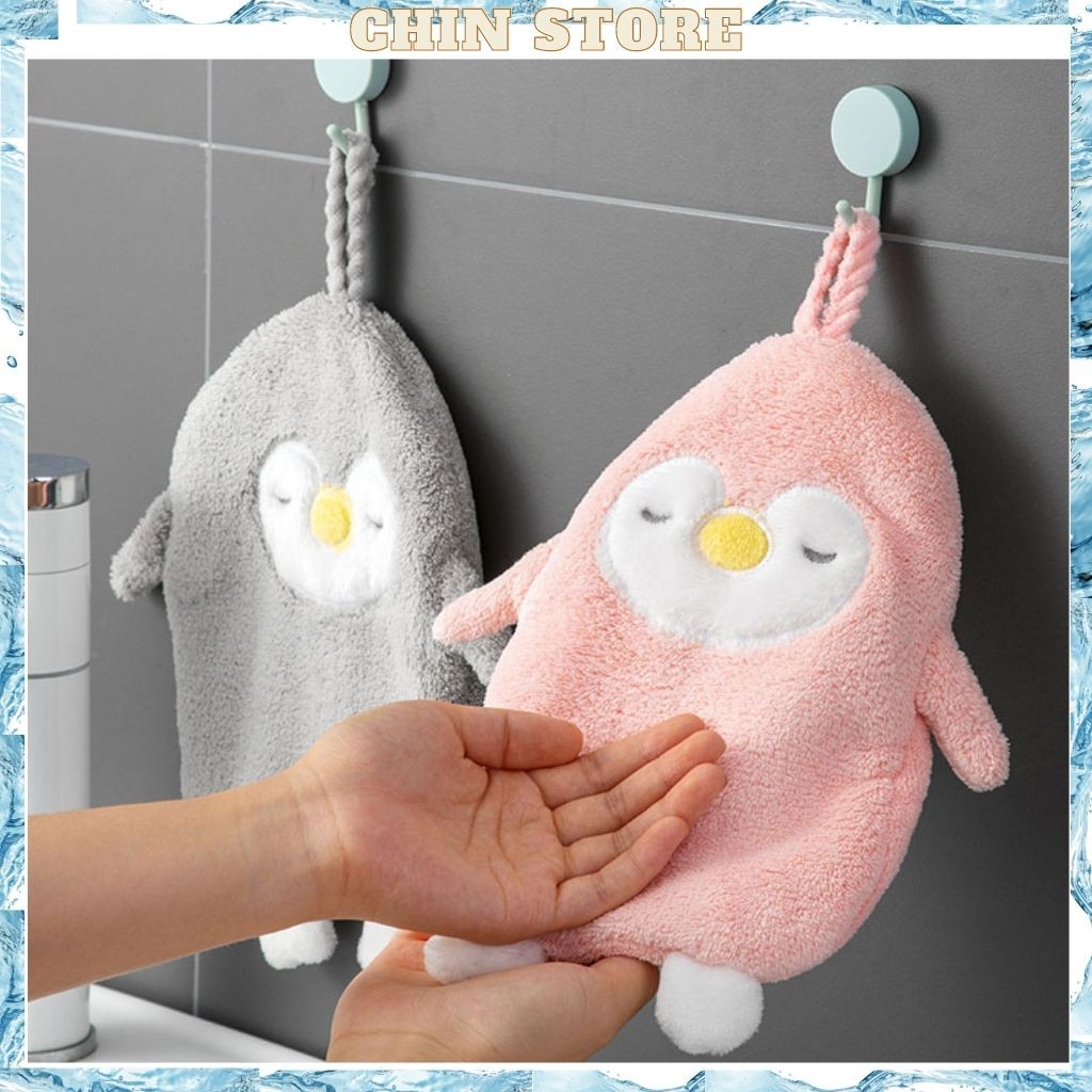 Khăn lau tay lông cừu phòng bếp, phòng tắm hình chim cánh cụt siêu thấm nước , treo tường 24*23cm