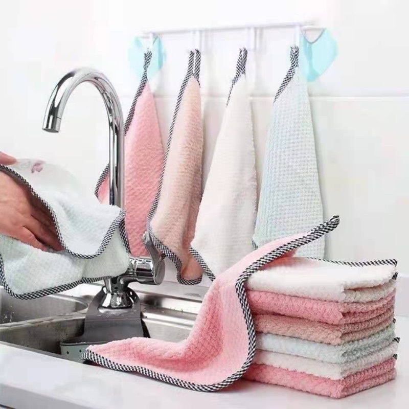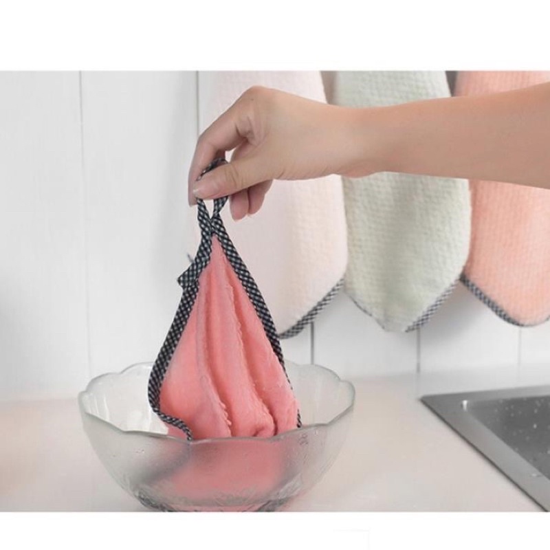 – Khăn lau bếp Không phai, lông tơ mềm, được trang bị dây buộc, có thể