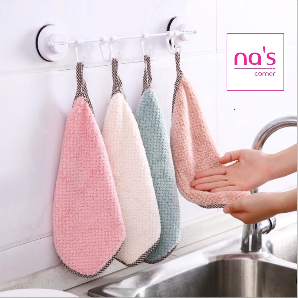 – Khăn lau bếp Không phai, lông tơ mềm, được trang bị dây buộc, có thể