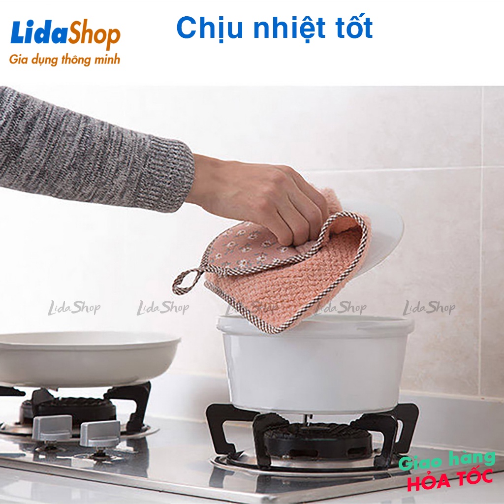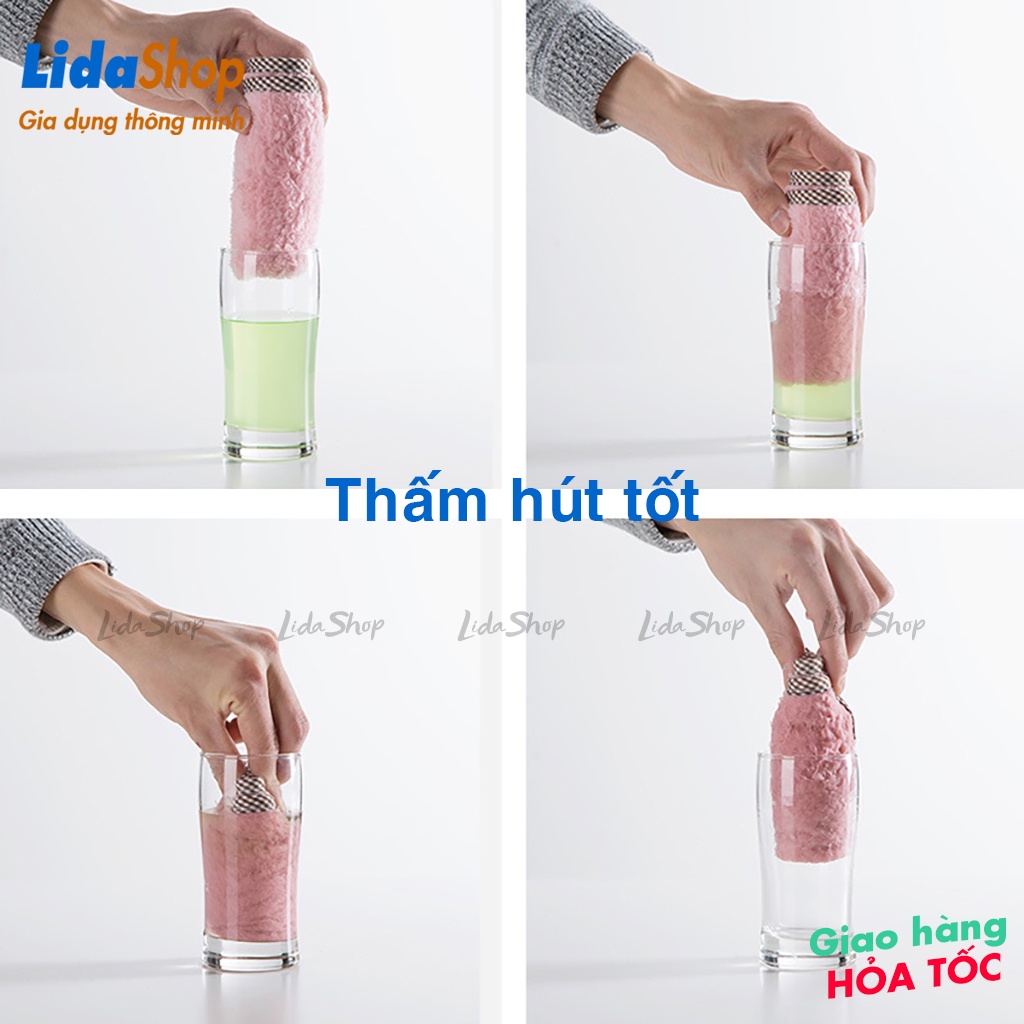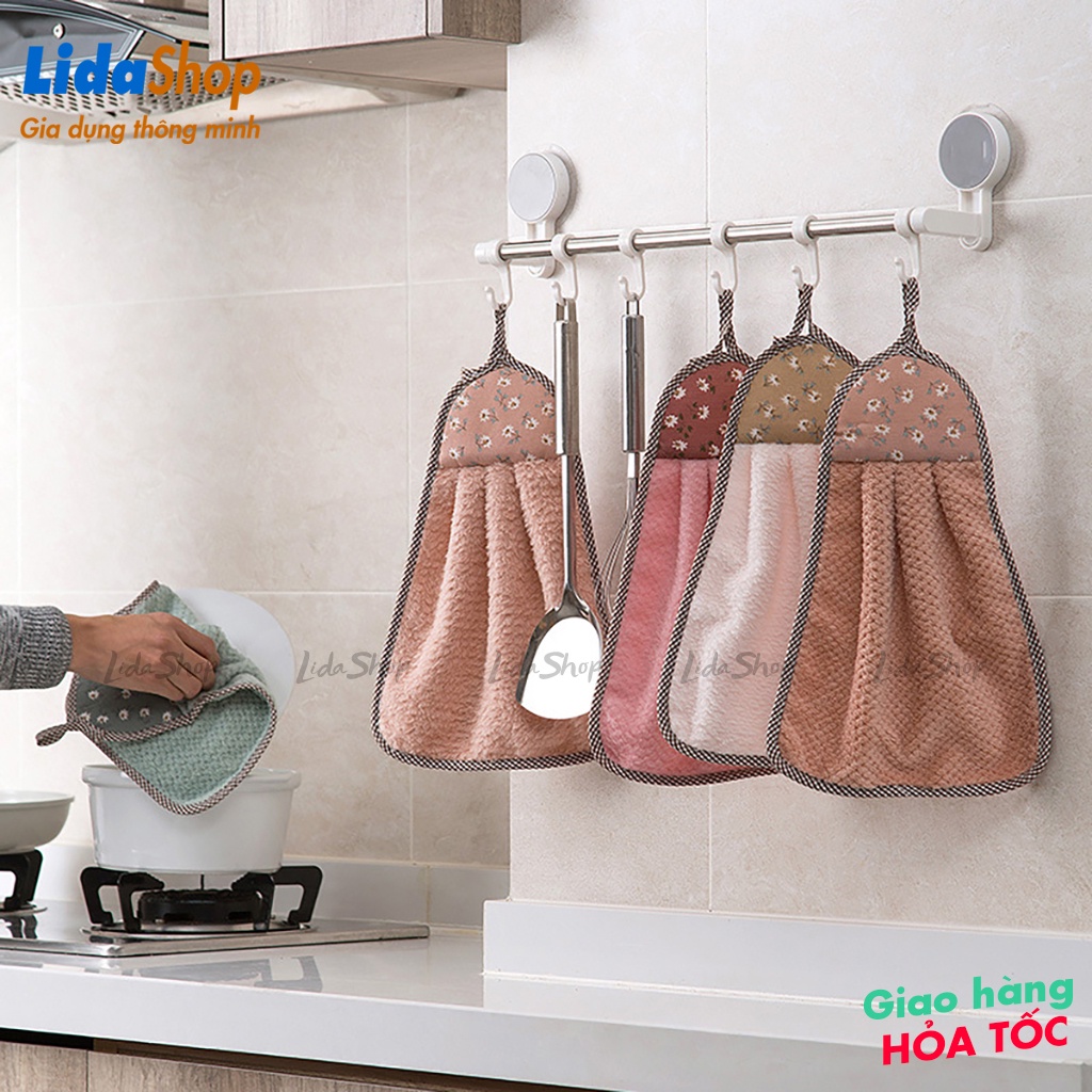 Khăn lau tay nhà bếp Lidashop, khăn lau tay nhà bếp đa năng siêu thấm lông mềm có móc treo _KLT