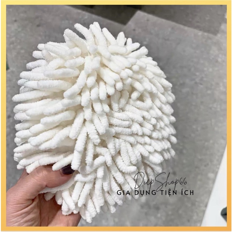 Khăn lau tay nhà bếp với kiểu dáng hình quả cầu bông dễ thương, xinh xắn, ngộ nghĩnh cho đôi tay bạn sạch sẽ mỗi ngày và không gian nhà bếp bạn thêm sinh động. Chất liệu sợi bông thấm hút mềm mại với da tay. Khăn bông lau bằng sợi nhỏ có thể giặt bằng máy và có thể được tái sử dụng hàng trăm lần mà không làm mất độ thấm hút. Để giữ được độ bền của sản phẩm, hãy giặt khăn trong nước lạnh.Màu sắc: SP có 2 màu trắng và xám.