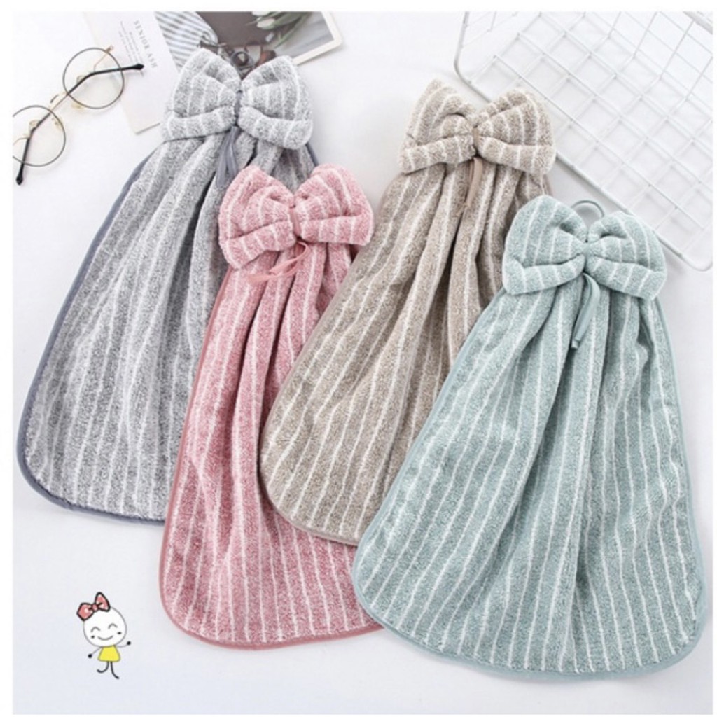 Khăn Lau Tay Nơ KẺ SỌC Chất Liệu Nhung Thấm Hút Nước Tốt