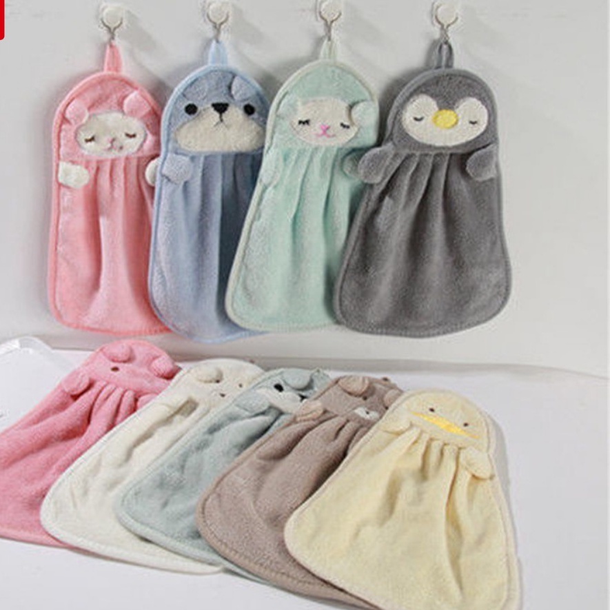 Khăn Lau Tay Thêu Hình Thú Đáng Yêu Treo Tường Bằng Vải Lông Cừu San Hô Xinh Xắn