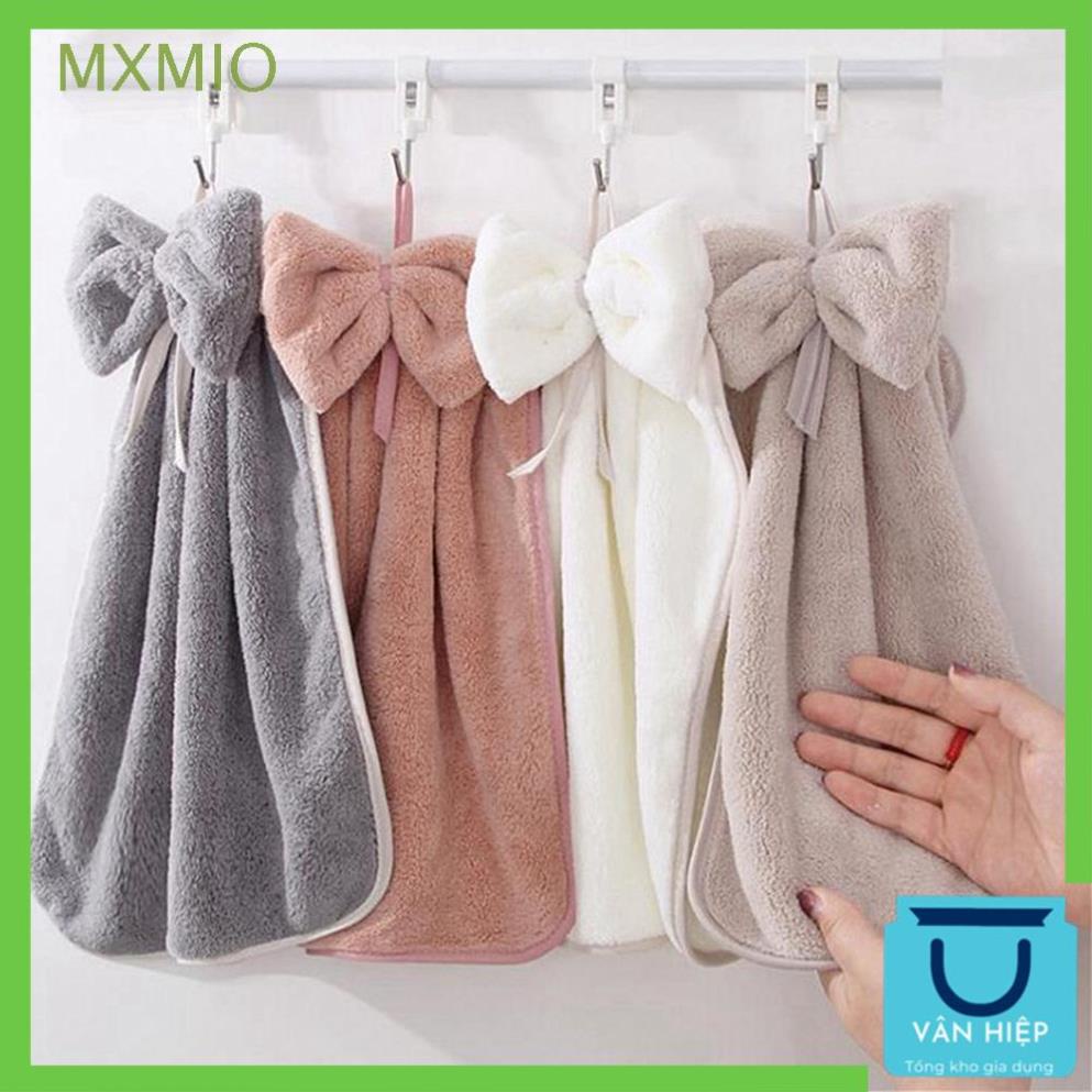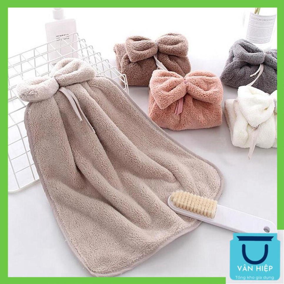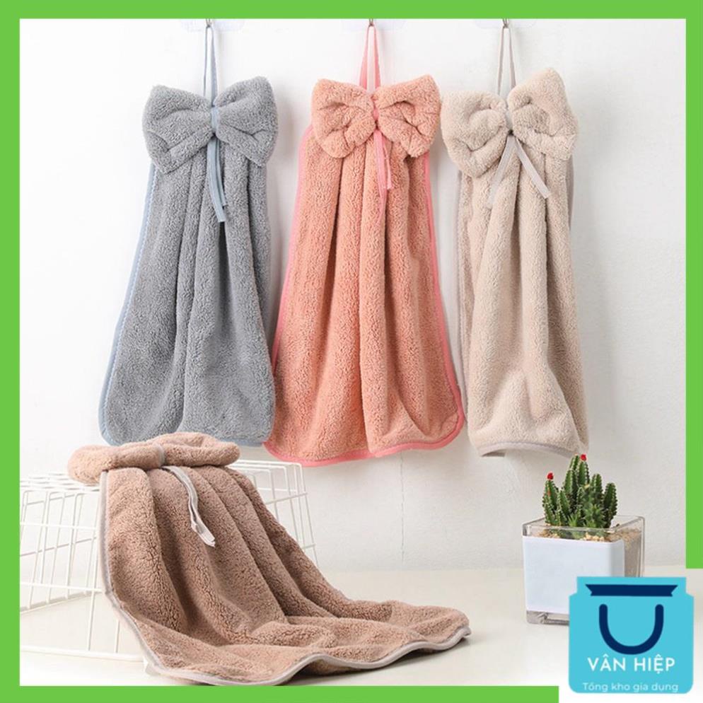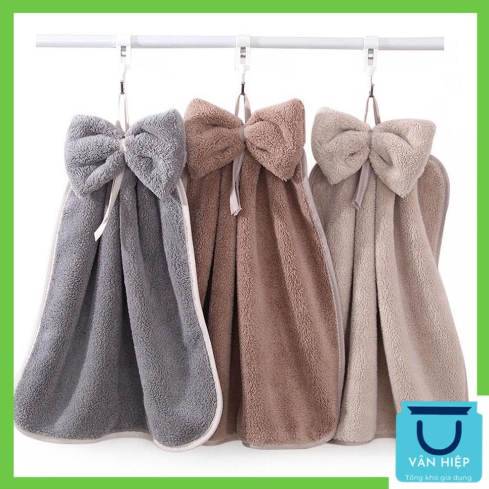 Khăn Lau Tay Treo Tường Bằng Vải Nhung San Hô Mềm Mại Thấm Hút Nhanh Khô Hình Nơ Dễ Thương