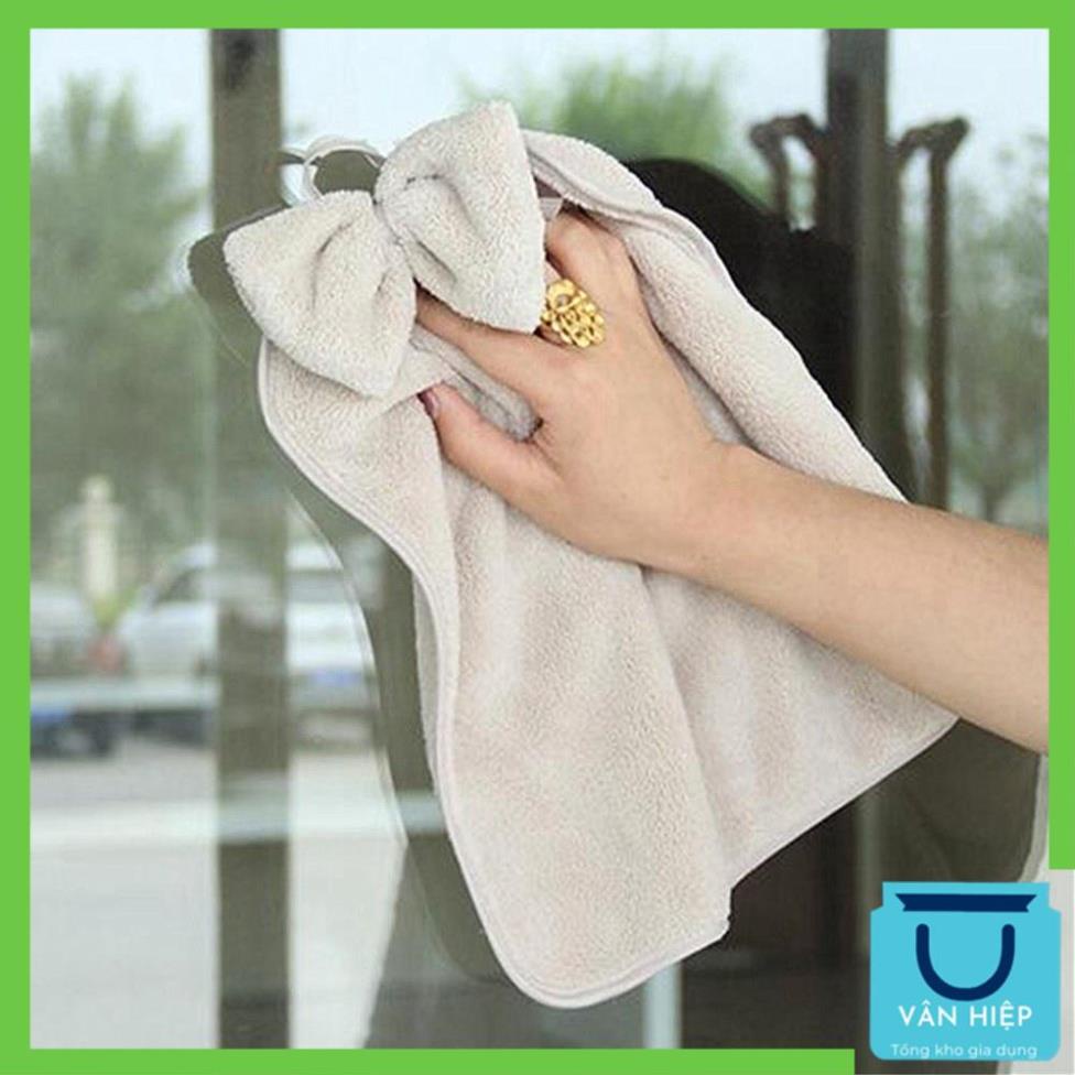 Giới thiệu Khăn Lau Tay Treo Tường Bằng Vải Nhung San Hô Mềm Mại Thấm Hút Nhanh Khô Hình Nơ Dễ Thương