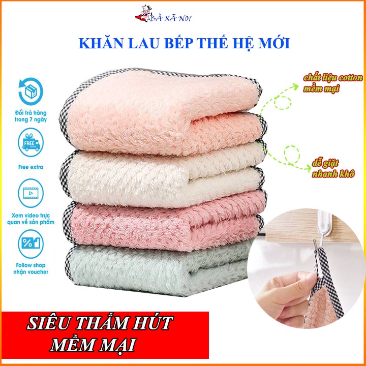 Khăn lau tay treo tường nhà bếp đa năng siêu thấm nước chống dính dầu mỡ hai mặt cỡ 25x27.5cm