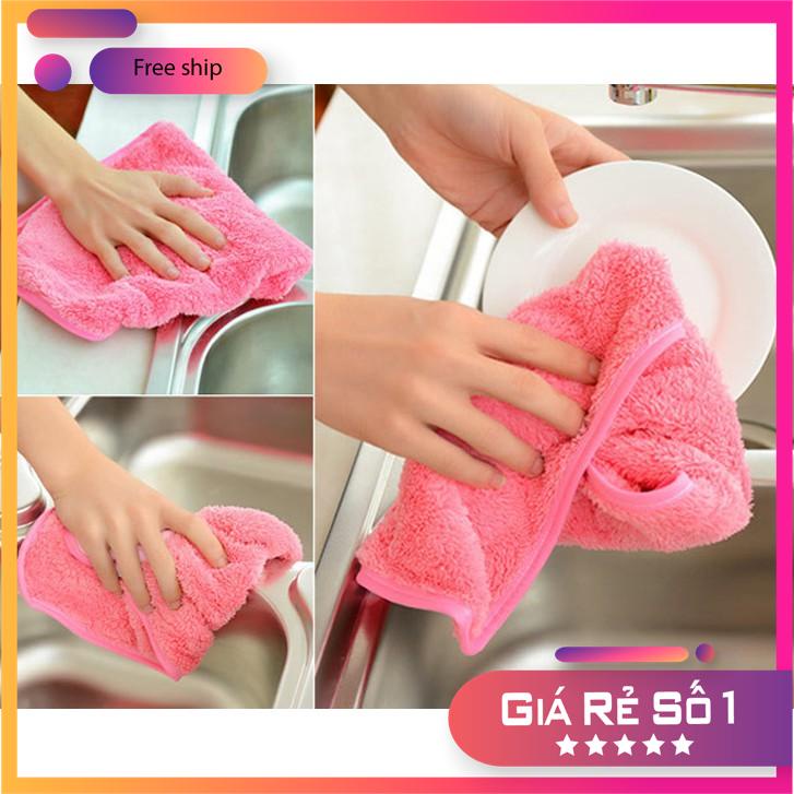 Khăn lau tay, lau bát, nhà bếp đa năng thấm nước chống dính dầu mỡ hai mặt loại lớn 26x42cm– Sợi mềm có khả năng thấm nước rất tốt, mềm dịu với da tay.