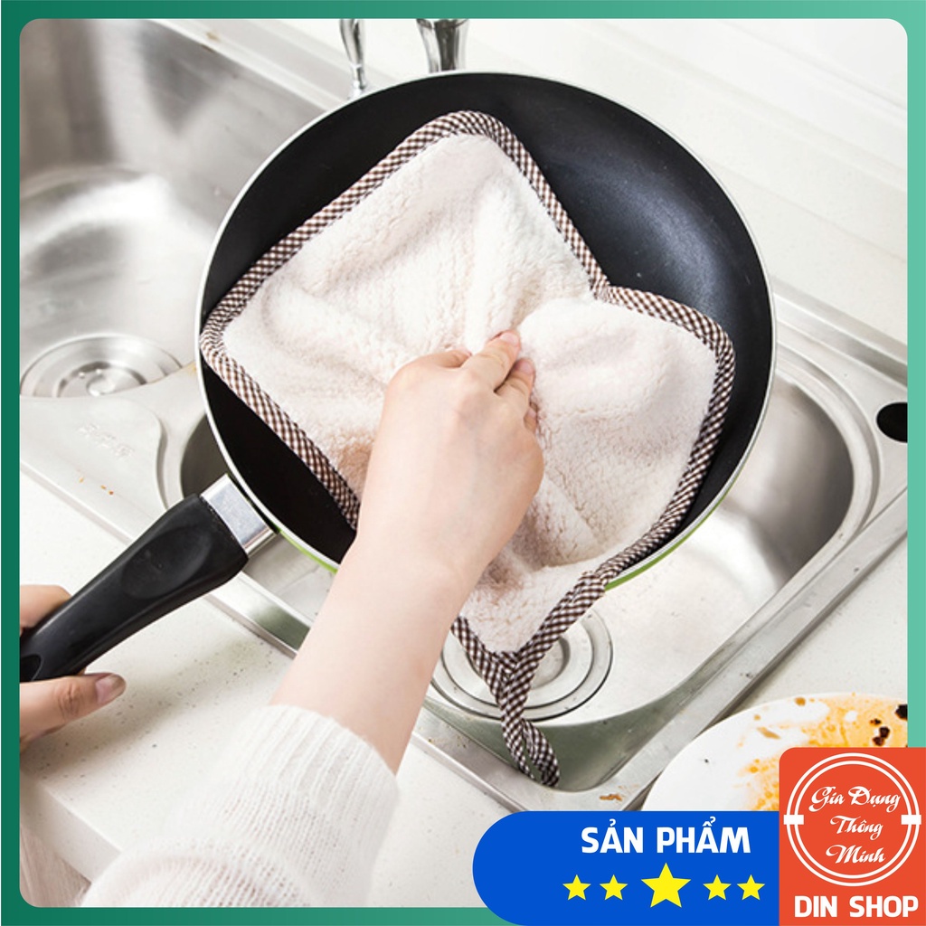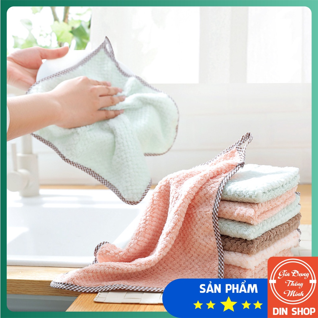 Khăn lau tay treo tường nhà bếp, bát đĩa, cốc chén thấm nước chống dính dầu mỡ hai mặt loại to 25x25.5cm