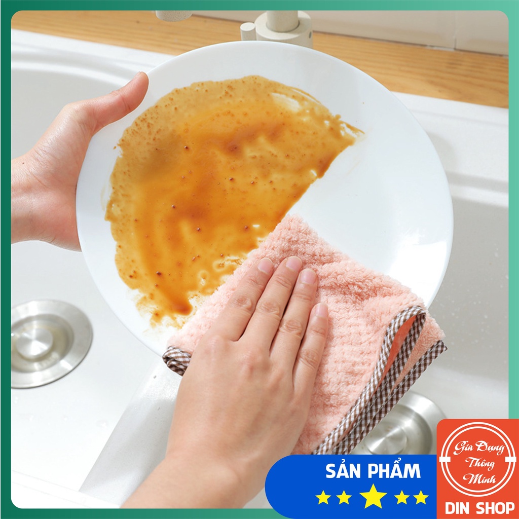 Khăn lau tay treo tường nhà bếp, bát đĩa, cốc chén thấm nước chống dính dầu mỡ hai mặt loại to 25x27.5cm