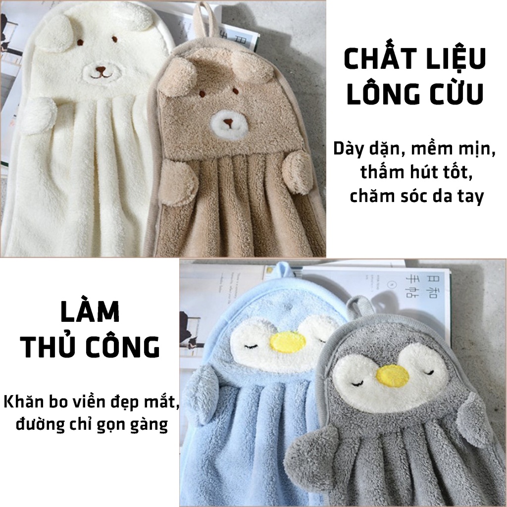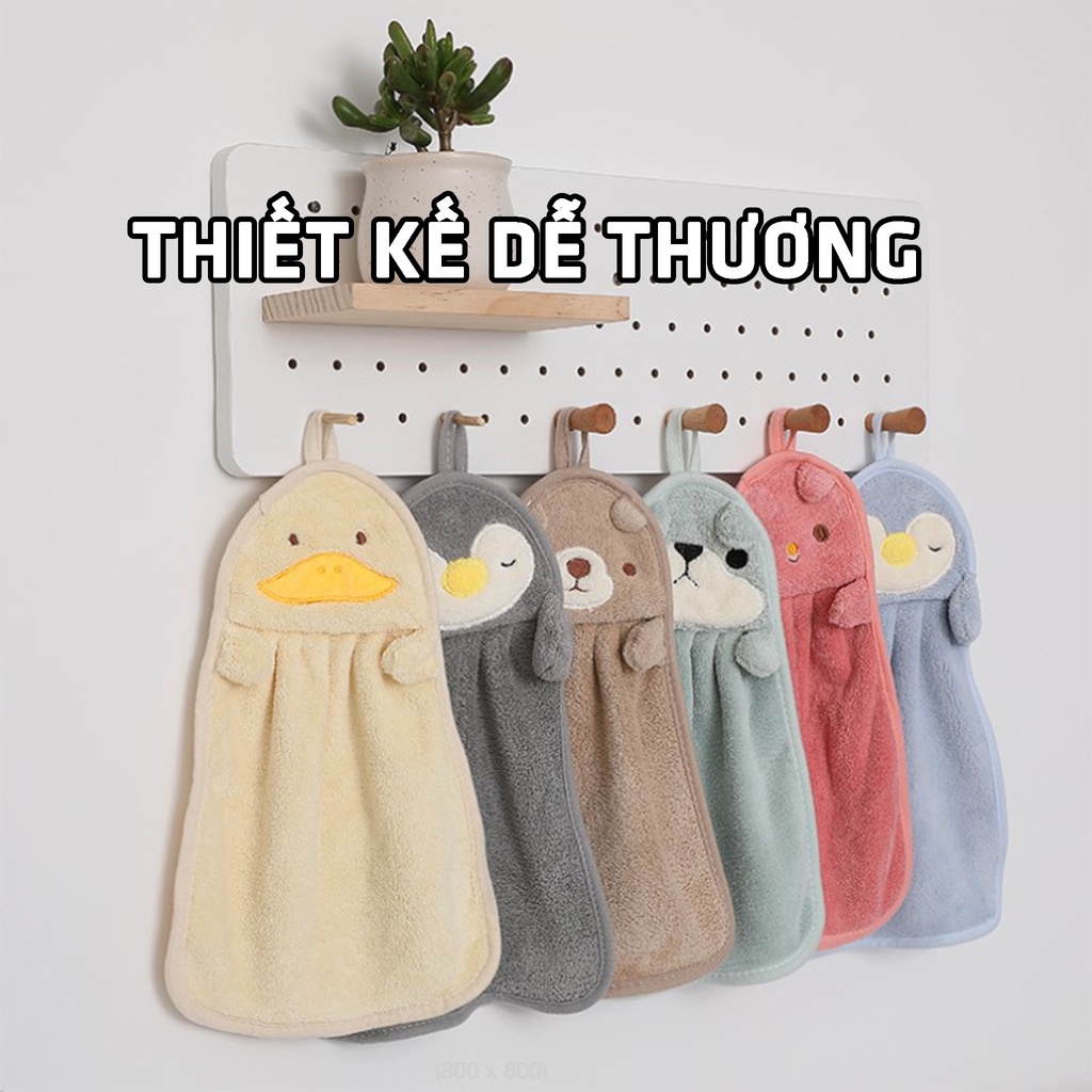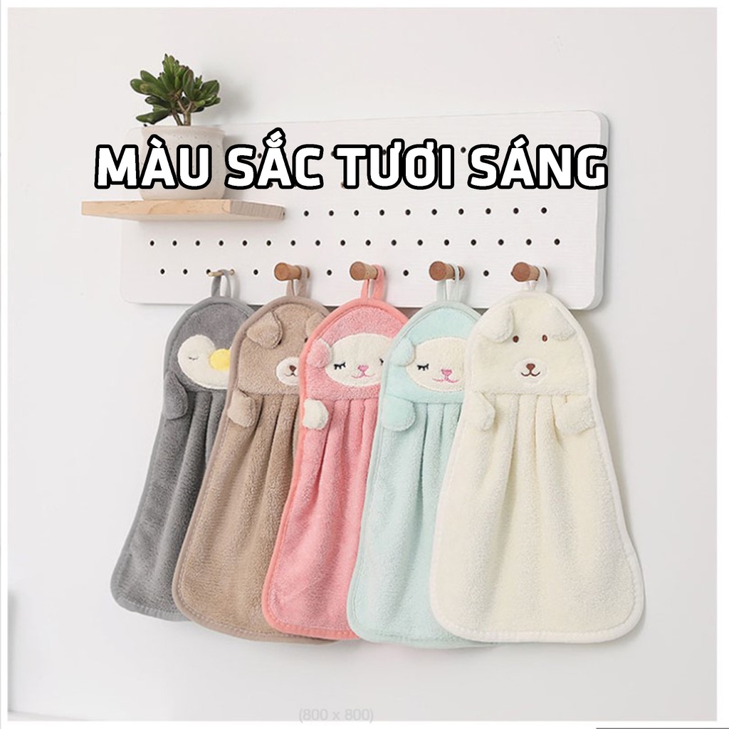 King Home - Khăn Treo Lau Tay Nhà Bếp Vải Lông Cừu San Hô Siêu Thấm Đa Năng Họa Tiết Hoạt Hình Dễ Thương