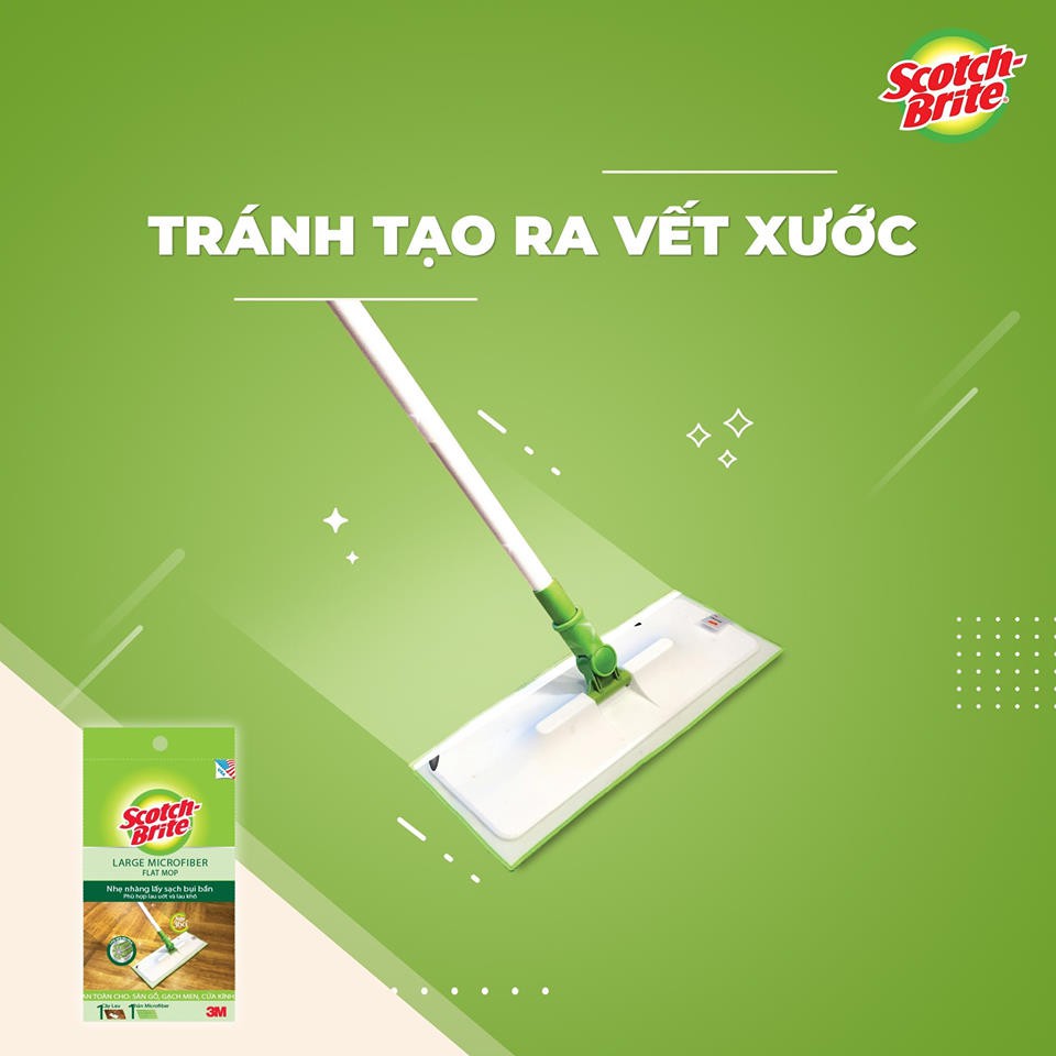 Khăn Lau Thay Thế Cây Lau Microfiber Lớn Scotch-Brite 3M, dễ dàng lau sạch vết bẩn trên mọi loại sàn và đảm bảo khô nhanh, cực kì an toàn cho bé khi di chuyển.