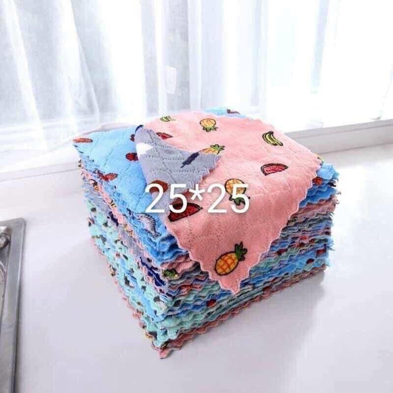 Khăn Lau 2 Mặt Họa Tiết Hoa Quả 25x25cm Siêu Thấm Hút Nước - Khăn Lau Lông CừuKHĂN ĐA NĂNG LAU BẾP MẪU MỚI !!!!