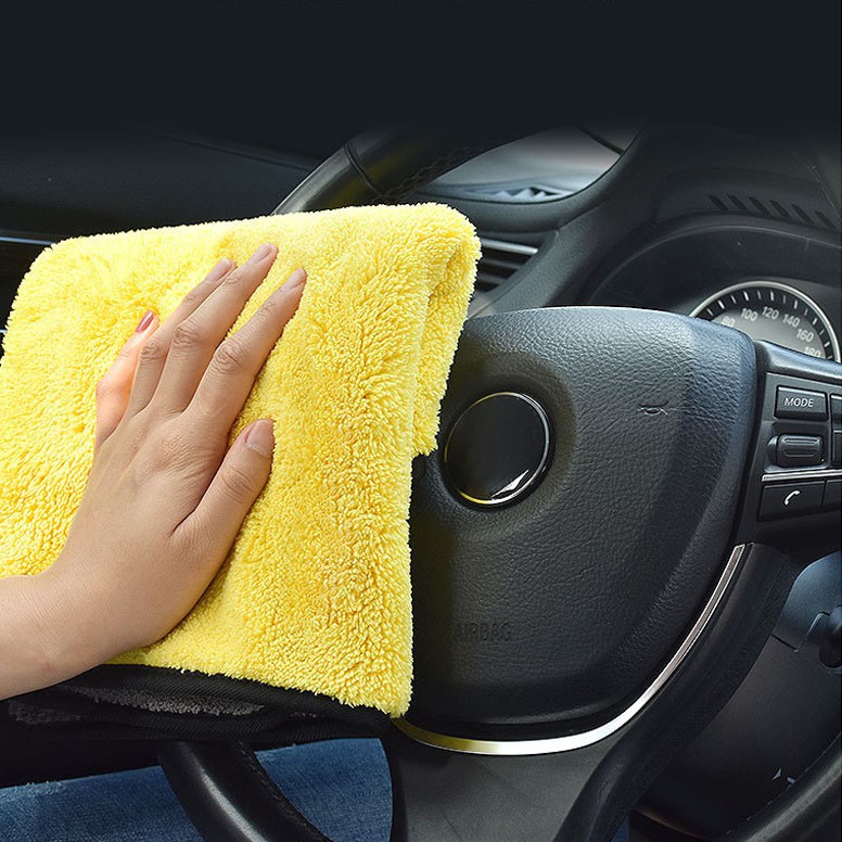 Khăn Lau Xe Hơi Chuyên Dụng Microfiber 2 Lớp Không Rụng Lông, Thấm Hút Nước Tốt – MÀU VÀNG