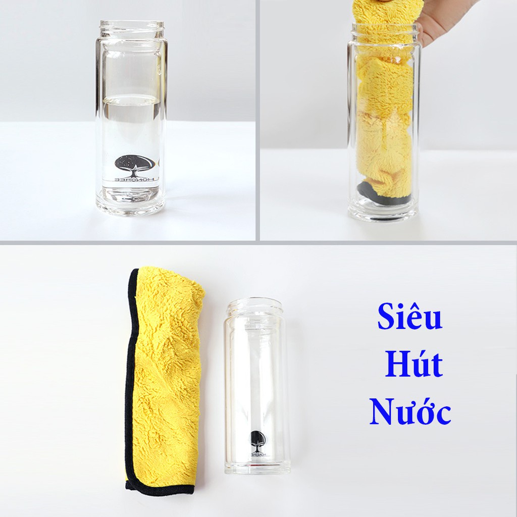Khăn lau xe hơi lau bếp lau kính lau tay màu vàng 2 lớp cao cấp siêu sạch siêu thấm hút lau sạch mọi vị trí