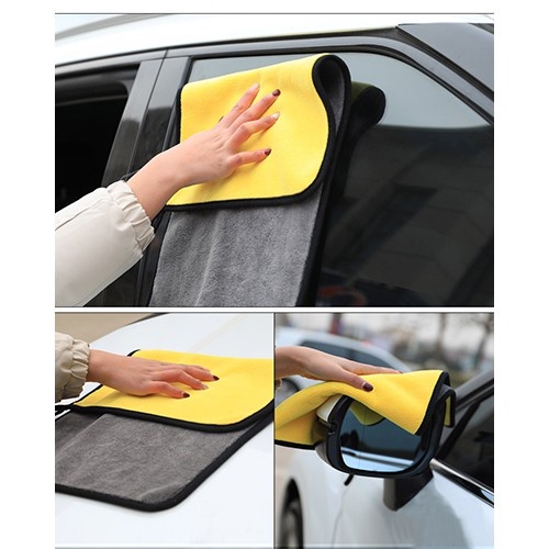 Thông tin sản phẩm khăn lau xe 2 lớp chuyên dụng- Khăn Lau Oto Dày Siêu Thấm Vàng Xám