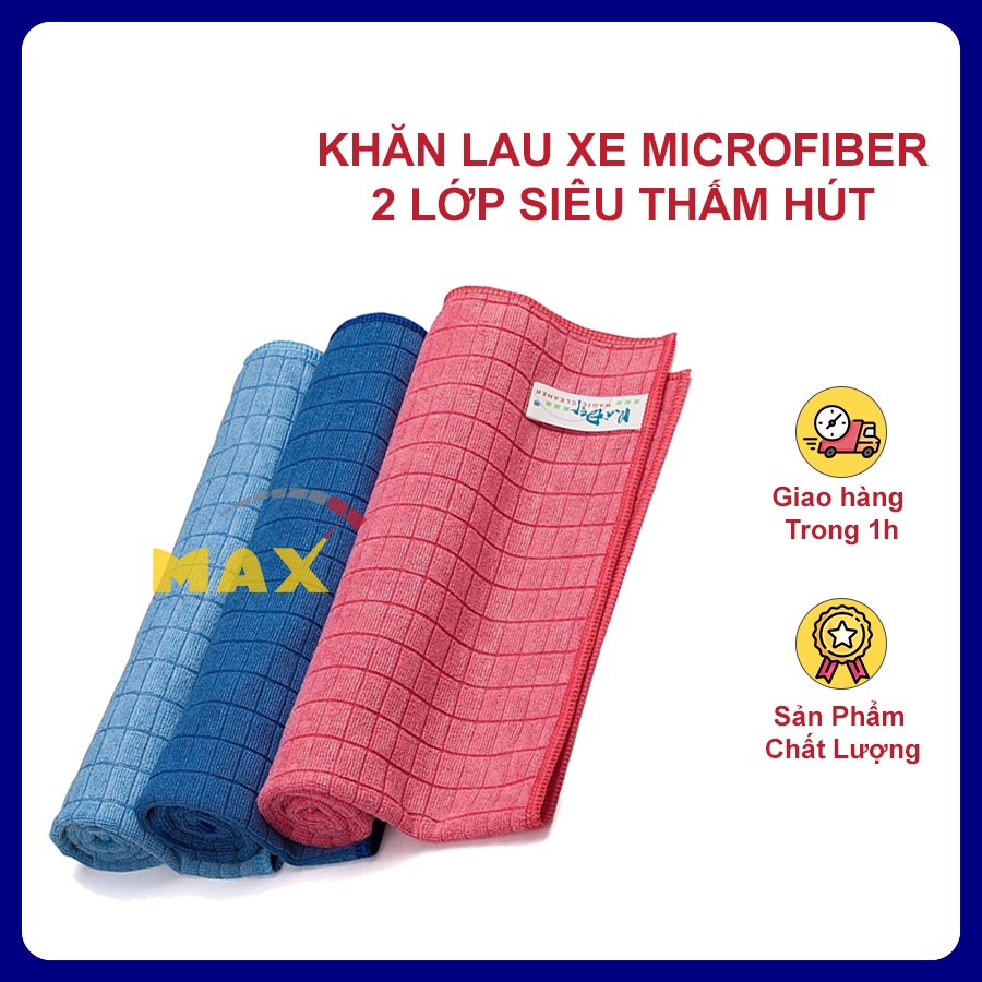 Khăn Lau Xe MICROFIBER Hai Lớp Siêu Thấm Hút Size Lớn 50cm x 55 cm