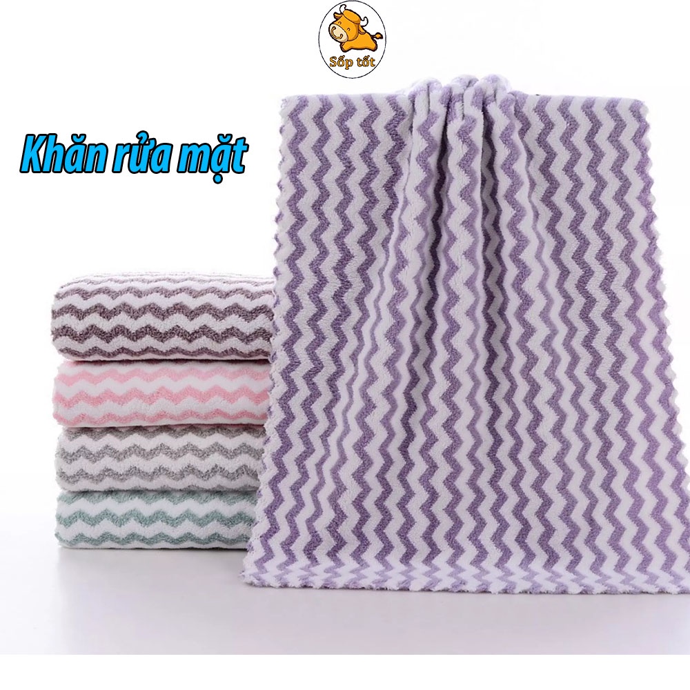 Khăn mặt cho bé khăn mặt dành cho gia đình mềm mại an toàn cho da- Khăn Mặt Lông Cừu Xuất Hàn Vân Kẻ Sọc từ chất liệu sợi vải bông mềm mịn, siêu mềm, không bị xù lông, không phai màu. - Công nghệ dệt mới giúp khăn mặt có những lỗ thông hơi làm cho khăn nhanh khô, kháng khuẩn trên bề mặt khăn