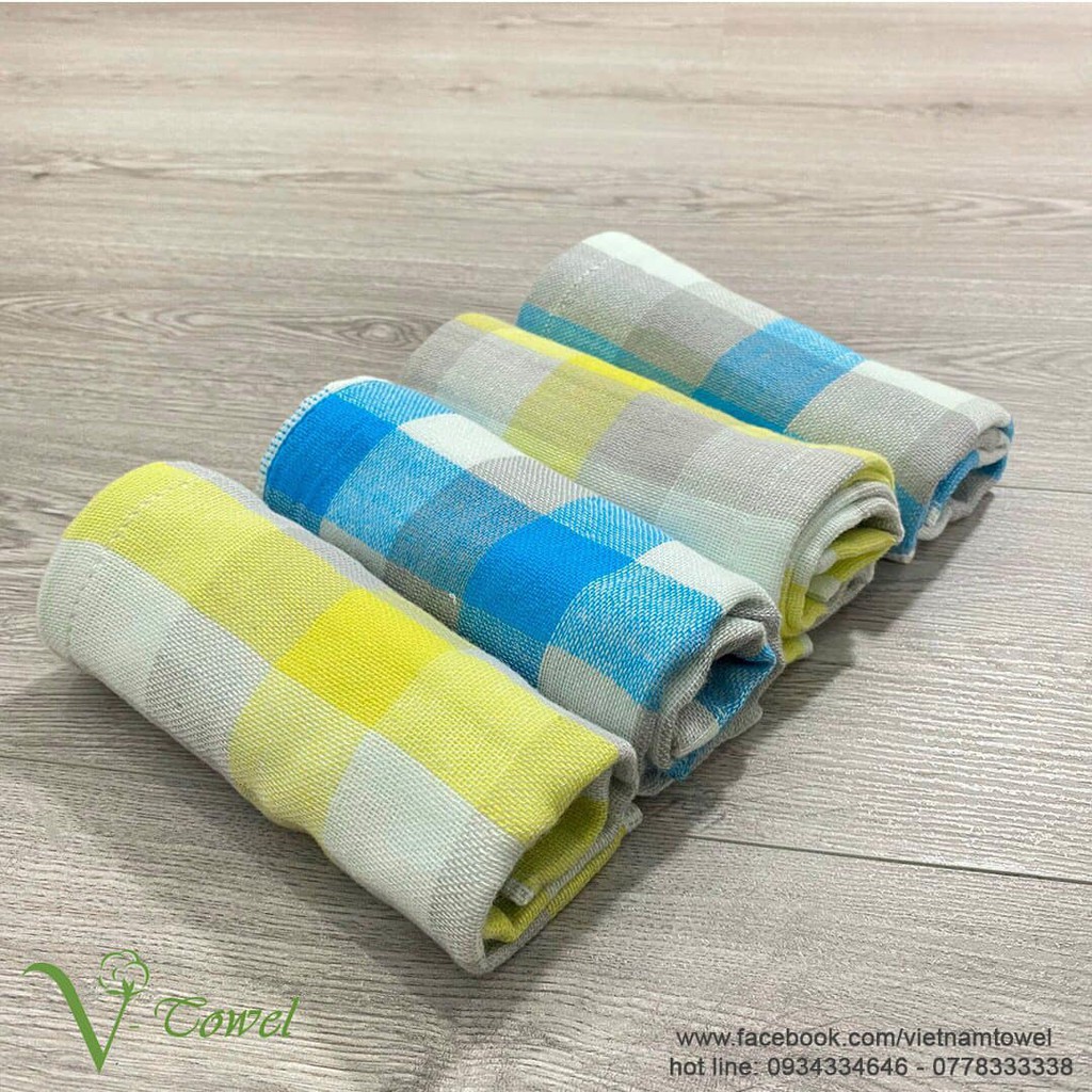 + Màu sắc: một mặt bông trắng, một mặt gạc kẻ caro xanh / vàng / xanh xám