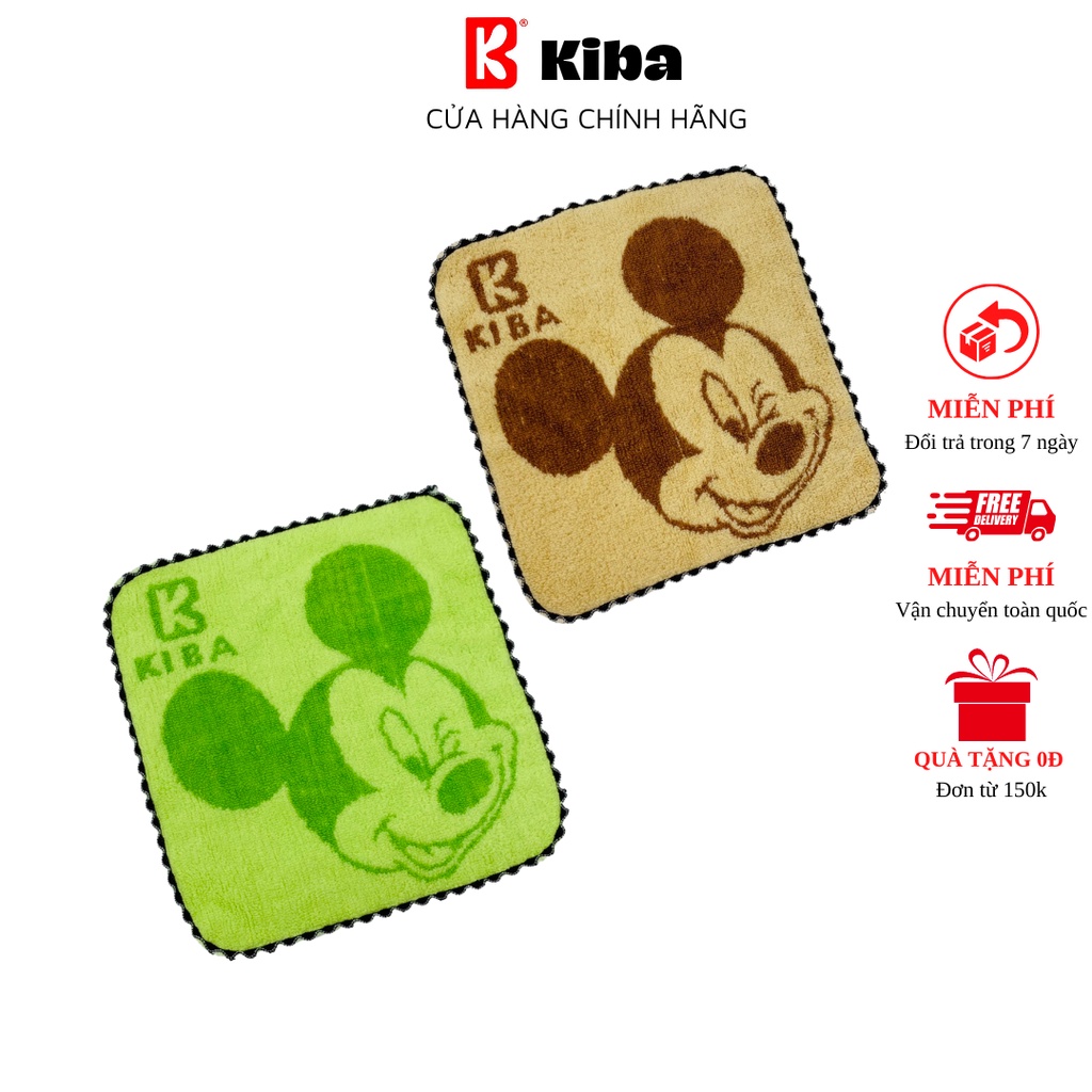 Khăn Mặt Cho Bé KIBA Họa Tiết Chuột Mickey KT 25x25cm Chất Cotton Êm, Mềm, Thấm Hút Tốt, An Toàn