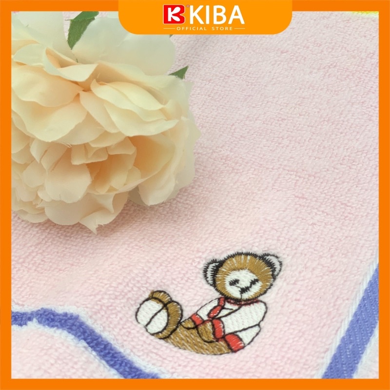 Khăn Mặt Cho Bé KIBA Thêu Hình Gấu Ngộ Ngĩnh, Chất Cotton Êm, Mềm, Thấm Hút, An Toàn Cho Da