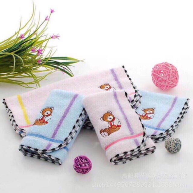 Khăn mặt cho bé siêu mềm mịn thêu gấu dễ thương 100% cotton kt 25x25 cm