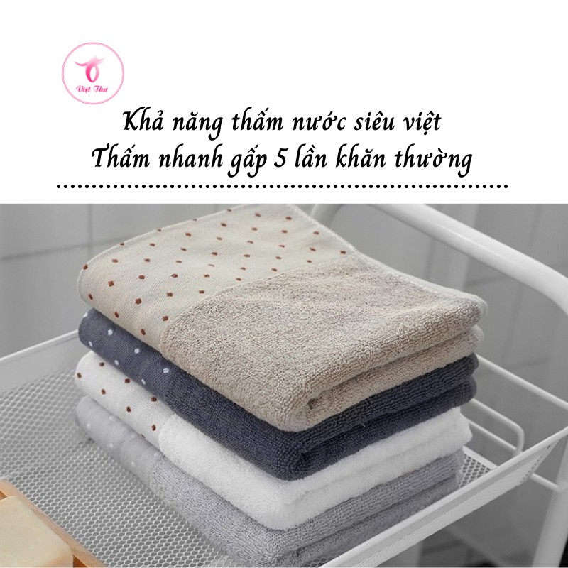 Khăn mặt cotton chấm bi cao cấp VIỆT THƯ, siêu mềm mịn, siêu thấm hút, siêu dày, 100gr, 35x75cm