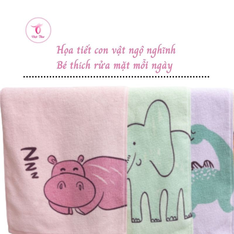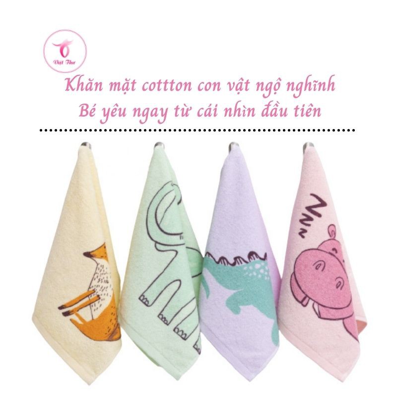 - Khăn mặt cotton con vật ngộ nghĩnh cao cấp VIỆT THƯ, siêu mềm mịn, siêu thấm hút, 50gr, 25x50cm- Các bé sẽ thích item này lắm đây, họa tiết khăn không những sống động, mà các con vật đều vô cùng thân quen để bé yêu luôn việc rửa mặt.