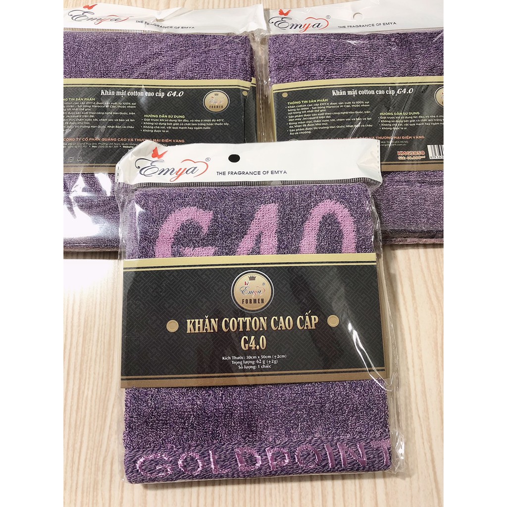 Khăn Mặt Cotton Emya G4.0 Cao Cấp 100% sợi Cotton tự nhiên, bông mềm mịn, thấm nước tốt 30X50