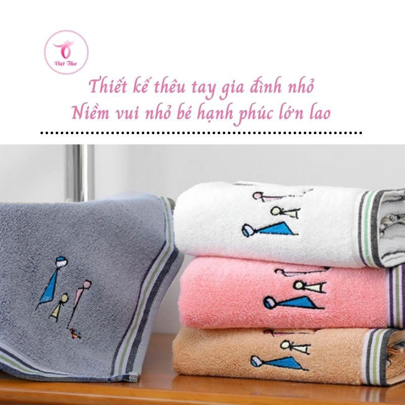 Khăn mặt cotton gia đình nhỏ cao cấp VIỆT THƯ, siêu mềm mịn, siêu thấm hút, siêu kháng khuẩn, 60gr, 25x50cm- Chưa bàn về chất lượng, các cậu có bị ấn tượng bởi họa tiết của chiếc khăn không vậy? một gia đình nhỏ bình dị mà yêu thương, cảm giác chiếc khăn như là thành viên trong gia đình mình vậy. Một sự gắn kết vô hình phải không?