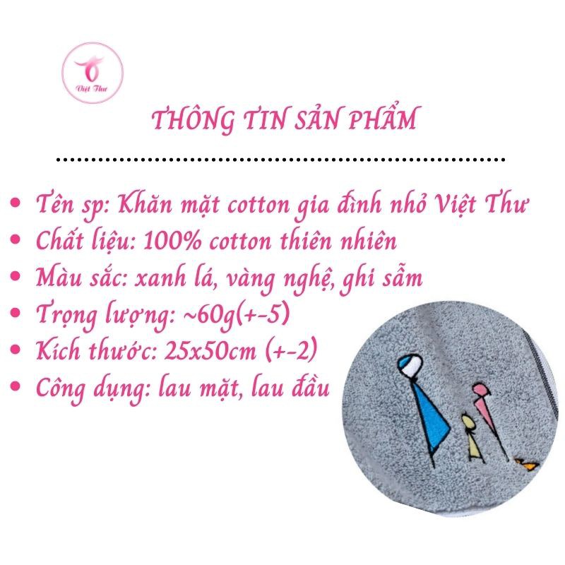 - Tên sản phẩm: Khăn mặt cotton gia đình nhỏ cao cấp Việt Thư