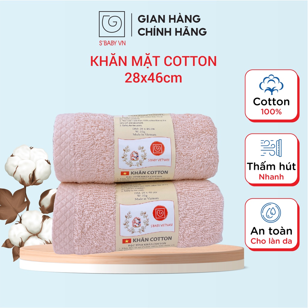 Khăn Mặt Cotton S'BABY 28x46cm Sản Xuất Từ Nguyên Liệu Tự Nhiên Mềm Mại, An Toàn Cho Da - 8936137960493🌸 THÔNG TIN SẢN PHẨM